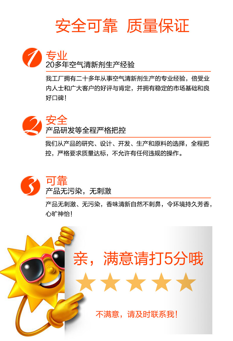 適應范圍:客廳、廚房、洗手間、衣櫥、辦公室、汽車、酒店、賓館、KTV等公共場所,有需要空氣清新芳香的地方都可以使用。