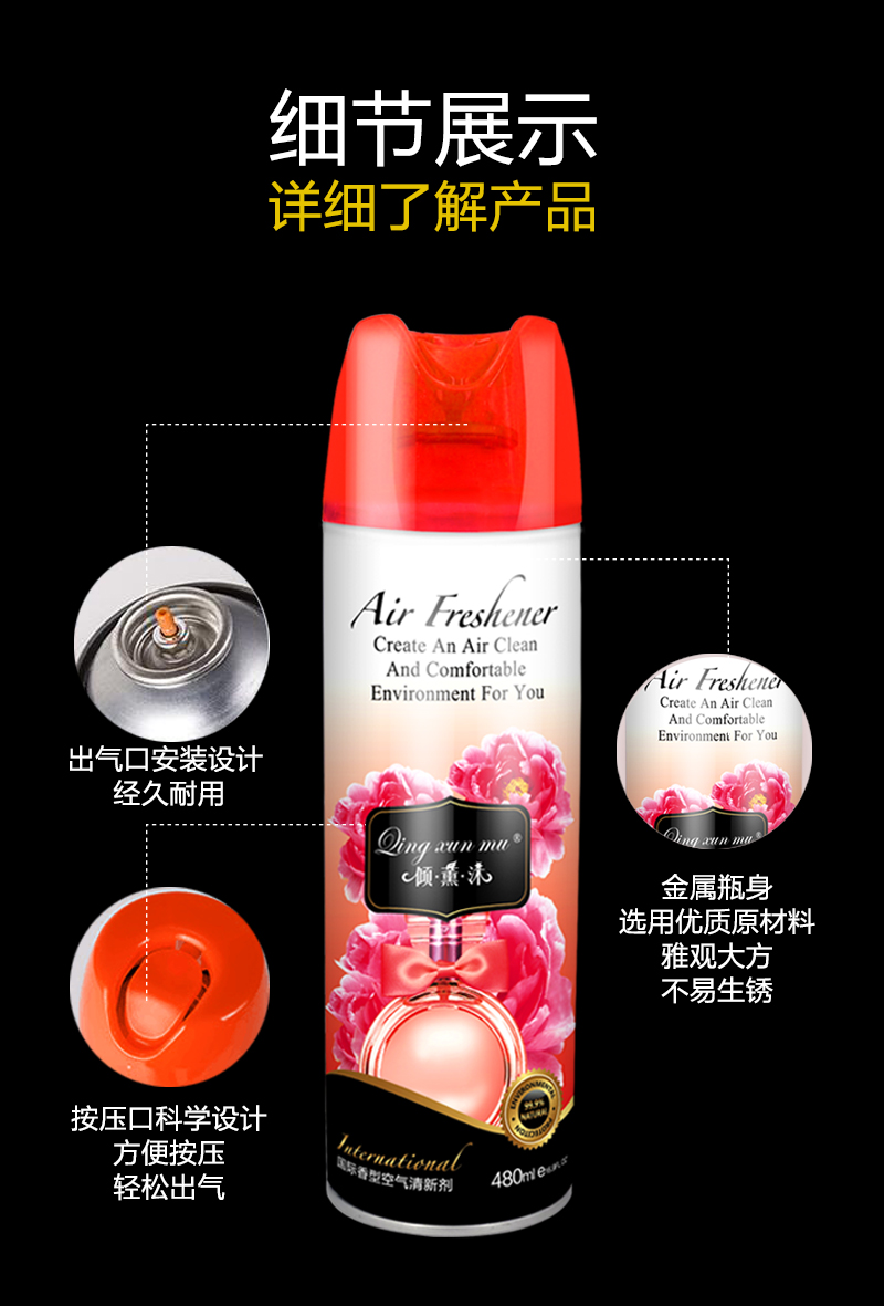 清新,使您心曠神怡,暢快舒適!特別加入植物精華,能消除空氣中各種混濁和難聞氣味,無(wú)刺激、